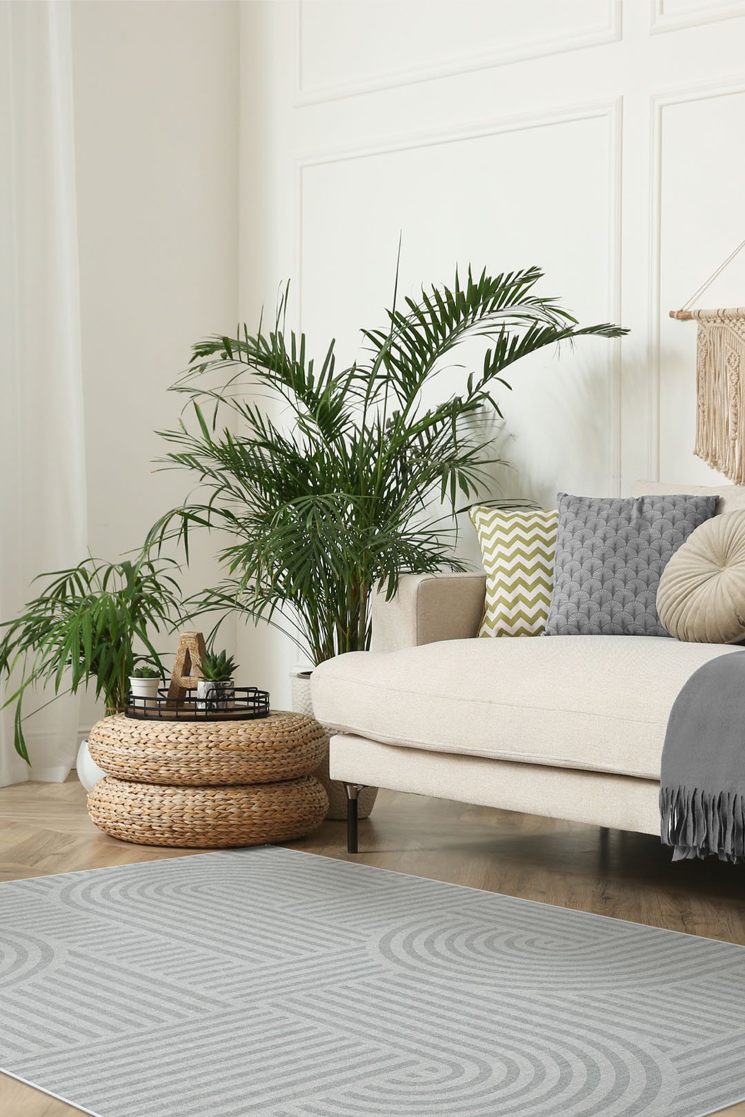 Lijn Grijs Vloerkleed