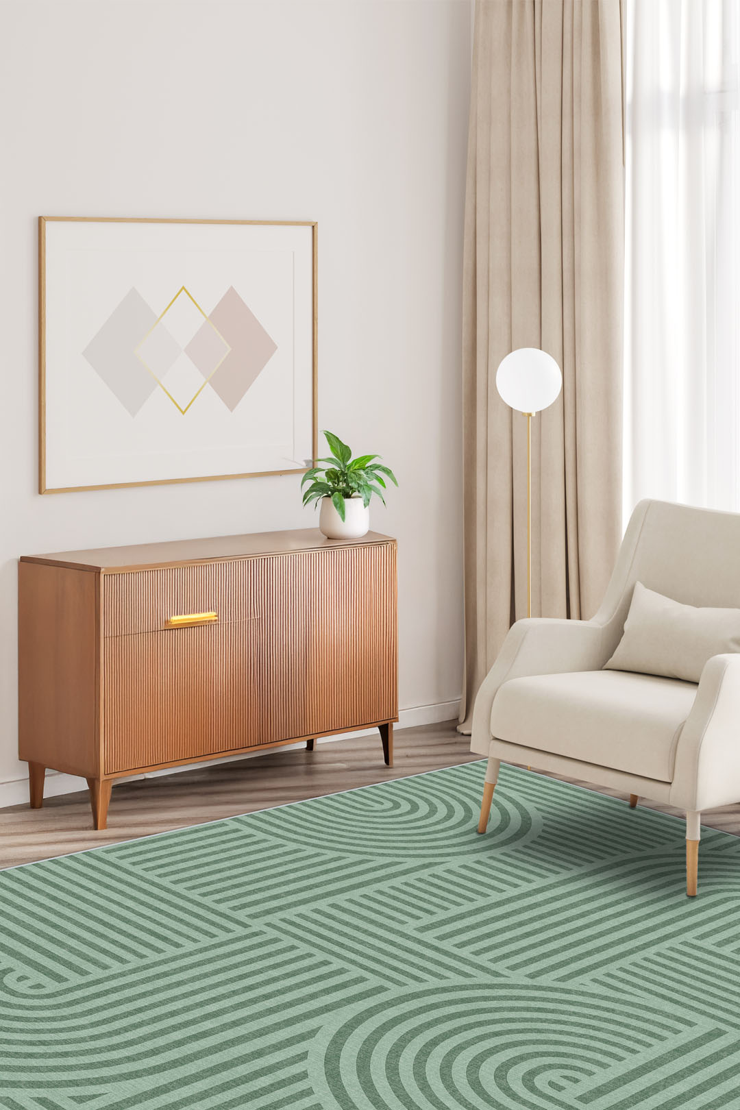 Lijn Groen Vloerkleed